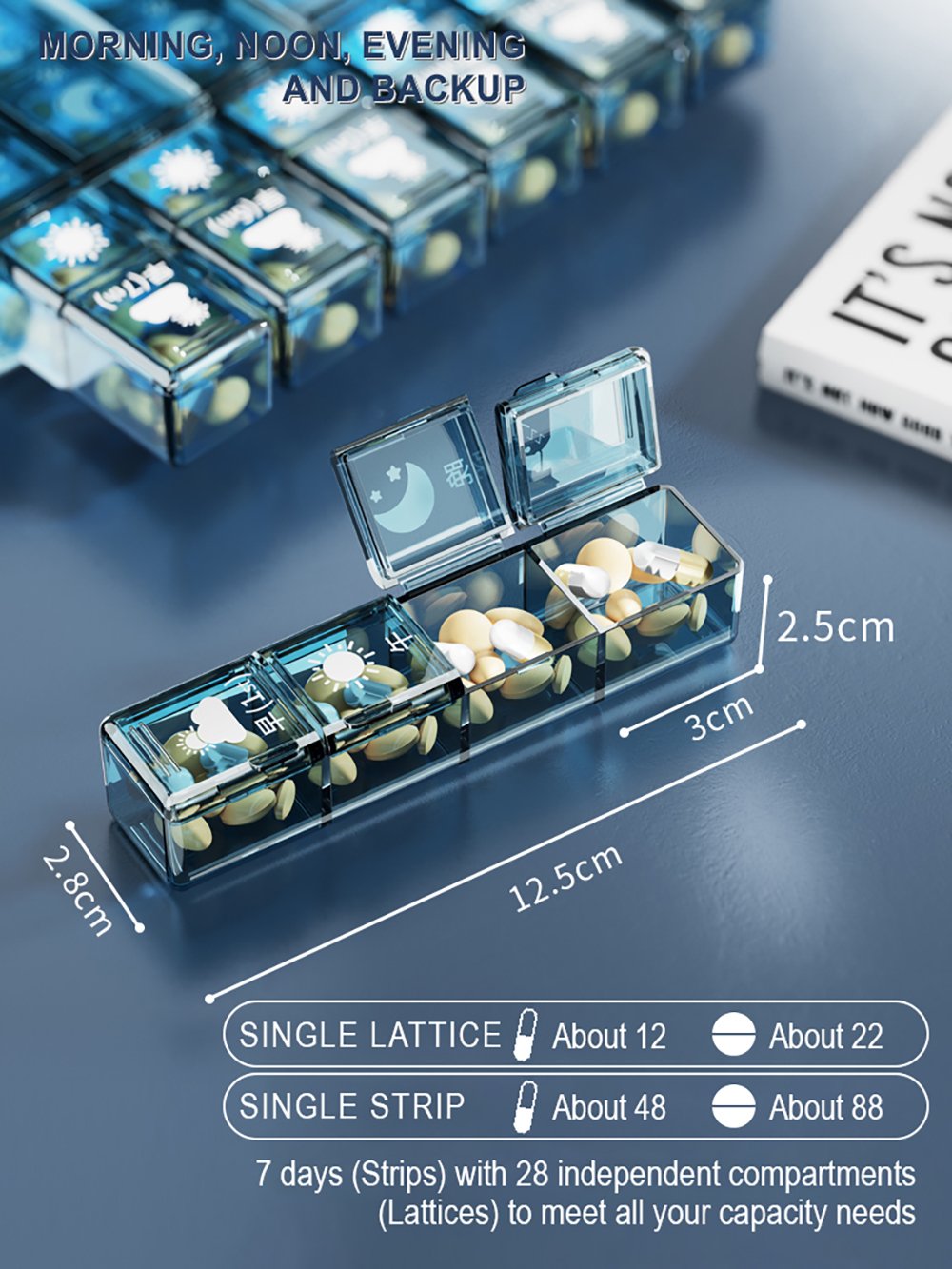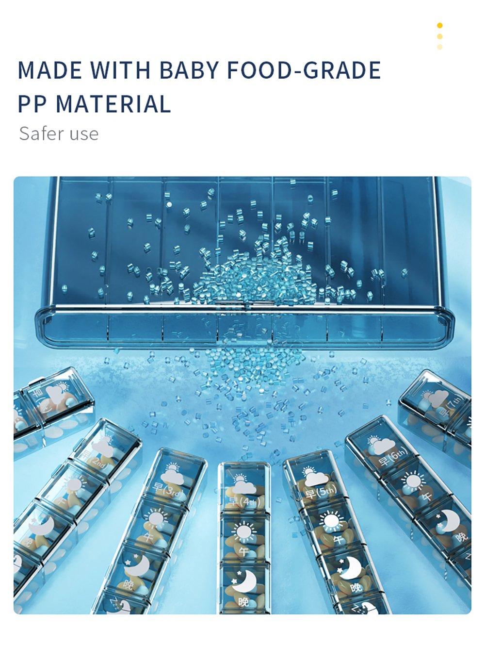 | Product Use Scenarios | Medication Organization/ Chronic Patients Use/ Daily Pill Use/ Storage for Travel/ Custom Pill Management/ Packaging for Bulk Orders |